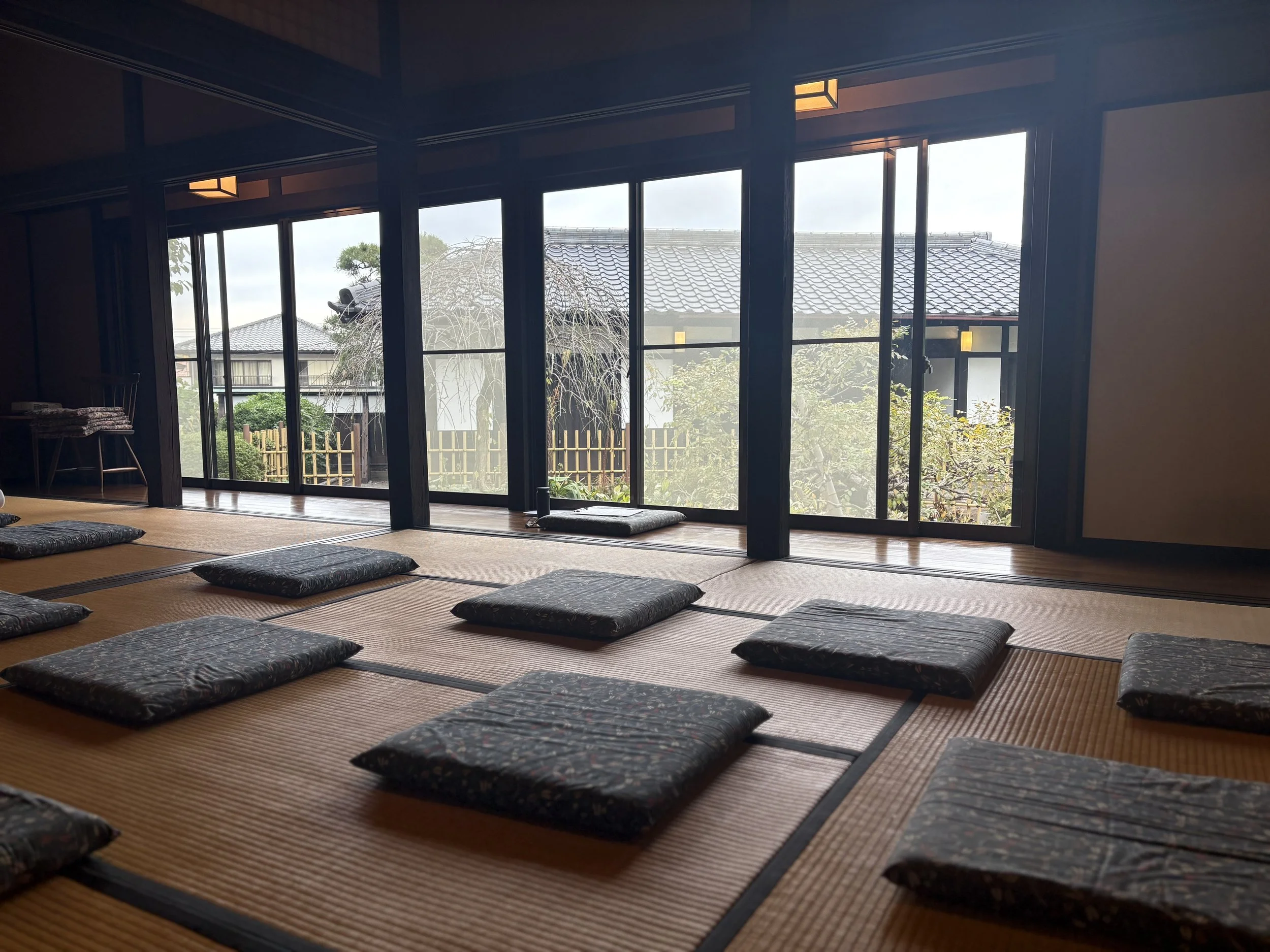 企業研修では、通常は日本語で実施させていただいているため、緊張もありましたが、甘粕屋敷の自然と深い呼吸に助けられ、落ち着いた気持ちで皆さんと一緒にマインドフルネスの時間を過ごすことができました。