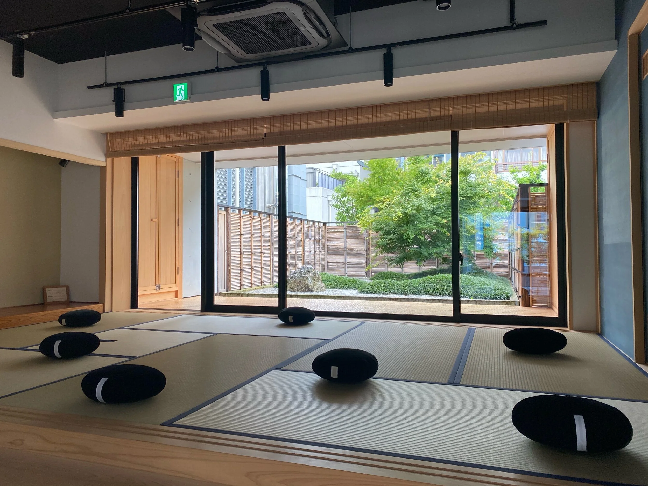 日本庭園を眺めながらゆったりと瞑想します。非日常な空間に身を置き、心と体の力みを開放します。あれこれと考えるのでなく、体と心を今この瞬間この場所にグラウンディングさせます。